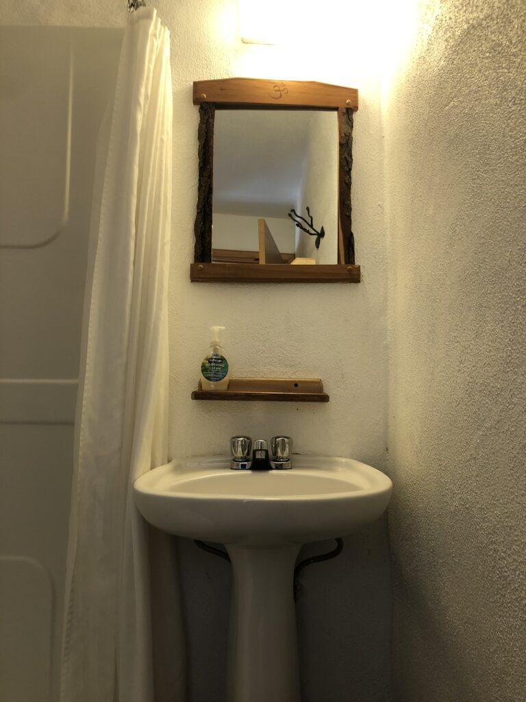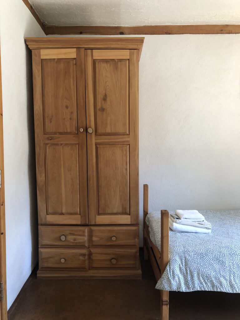 Les 4 chambres sont confortables et accueillantes avec une armoire. La salle de bain est partagée sur l'étage avec un maximum de 4 personnes. La bâtiment Ayurvédique située un peu plus loin, près de la forêt et l’espace est partagé avec seulement 4 autres chambres qui offre plus de tranquillité.
